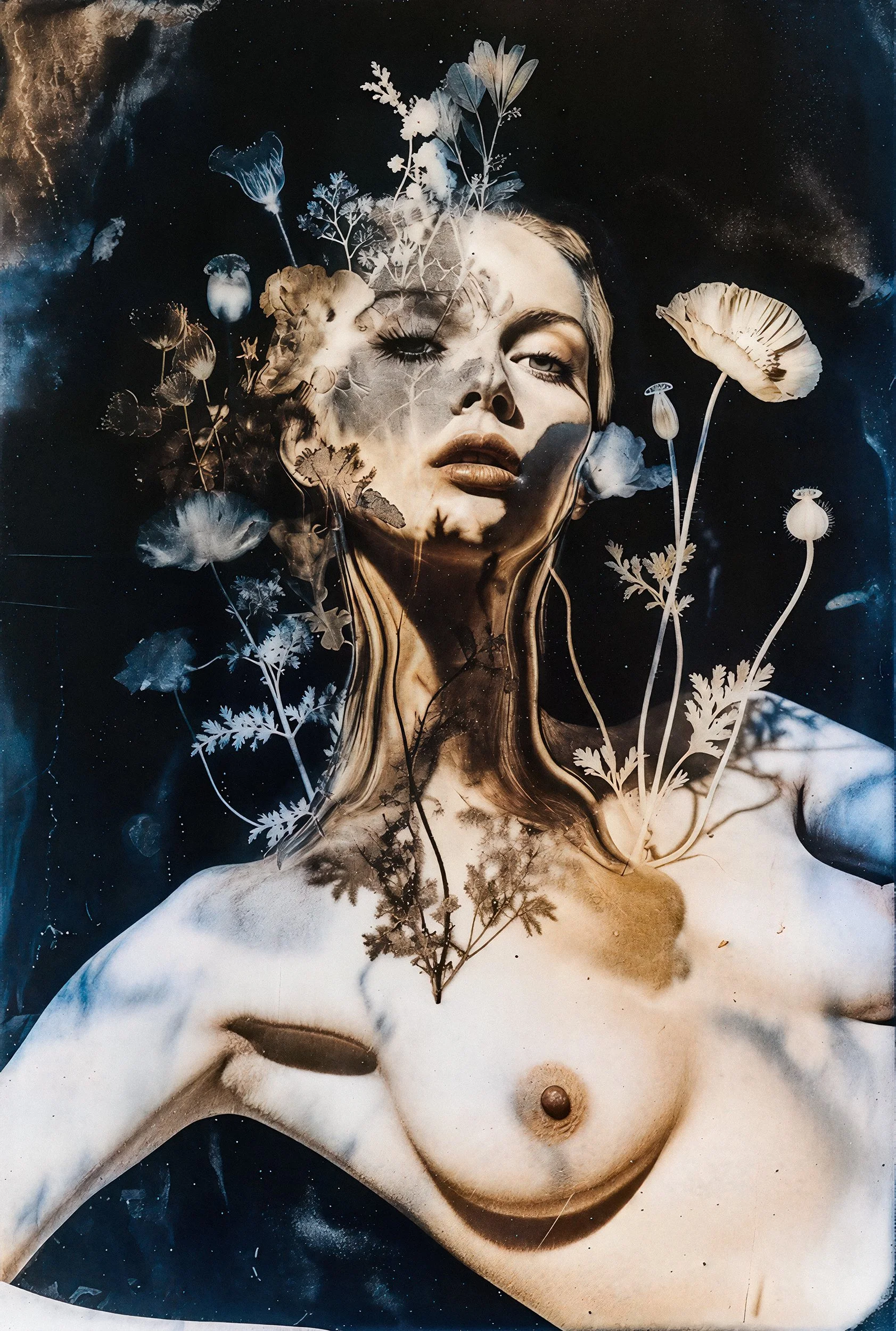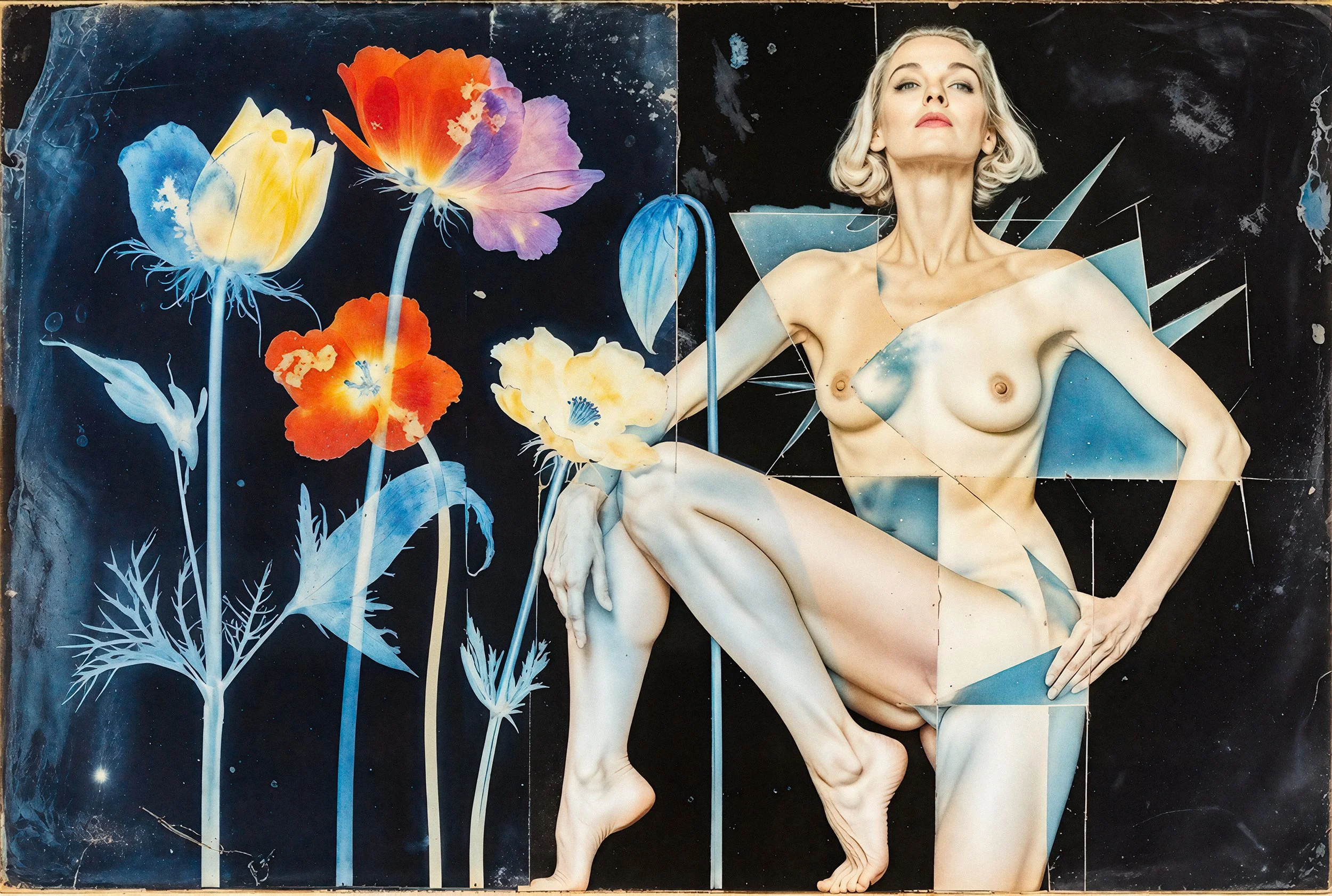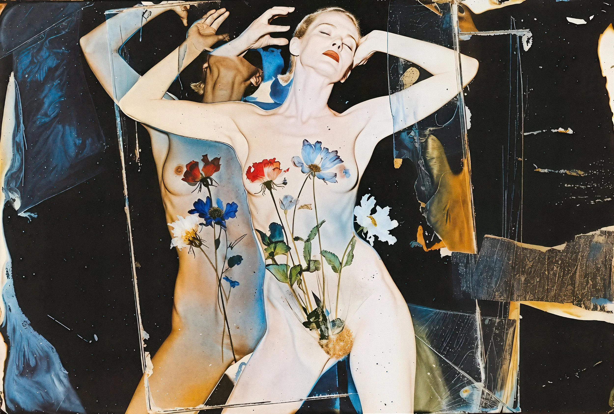 The series “Synth Vanitas” (Artificial Transience) is a critical engagement with AI-generated art. It deliberately plays with the metaphors of transience, beauty, and life, using the two most classic symbols for these themes: the flower and the young, beautiful, nude woman. Both stand as ultimate emblems of life precisely because they make its finitude visible. The series invokes the memento mori idea (“Remember that you must die”). This applies not only to us humans, but also to stylistic epochs and artistic techniques.