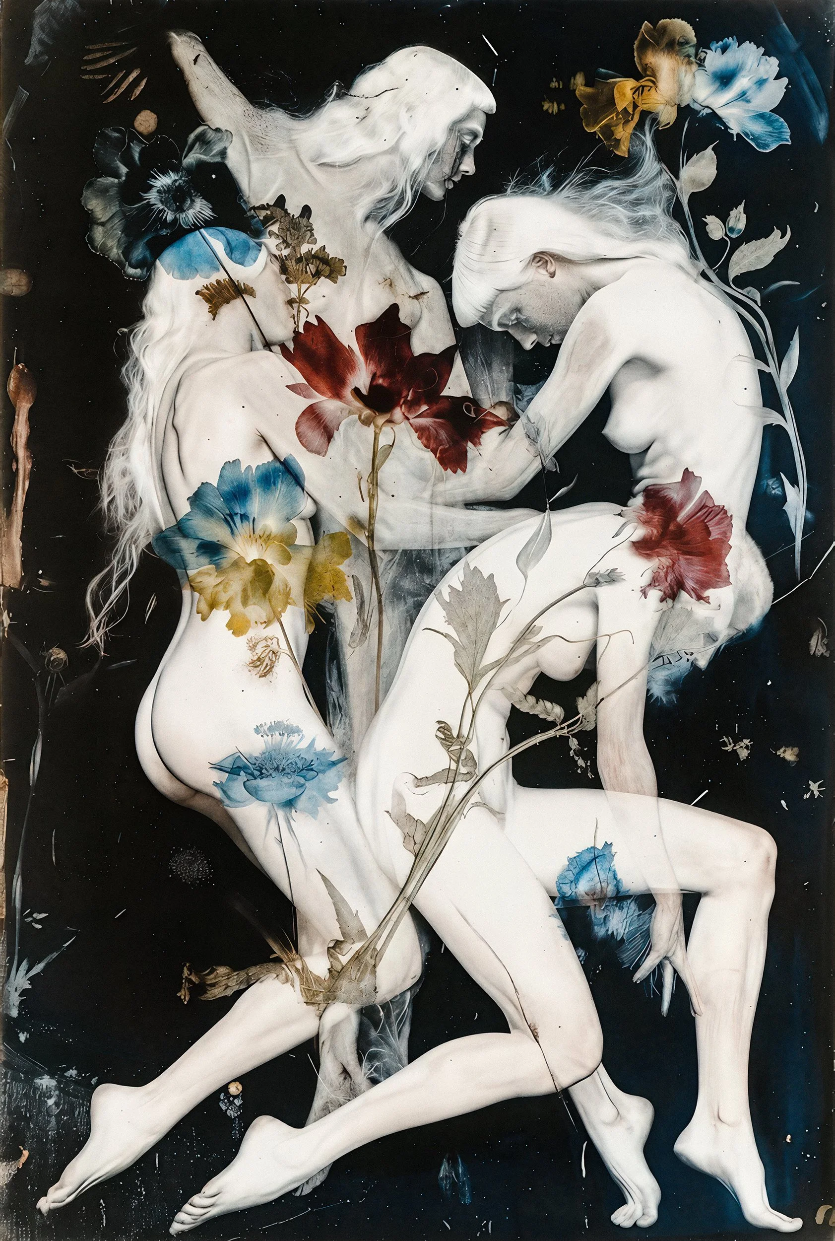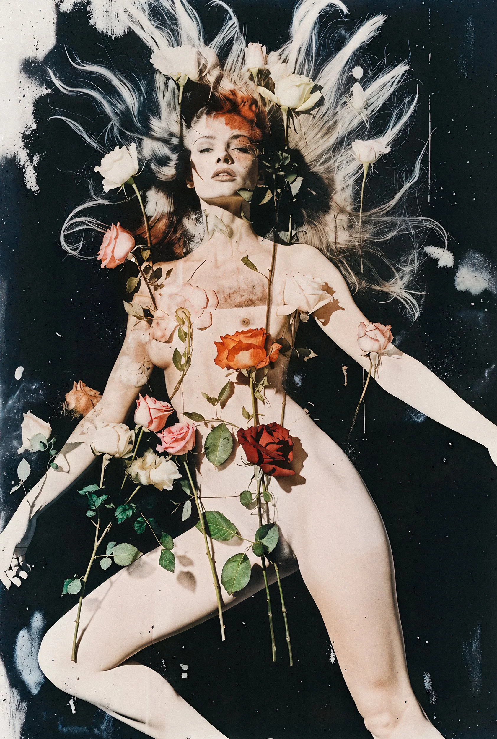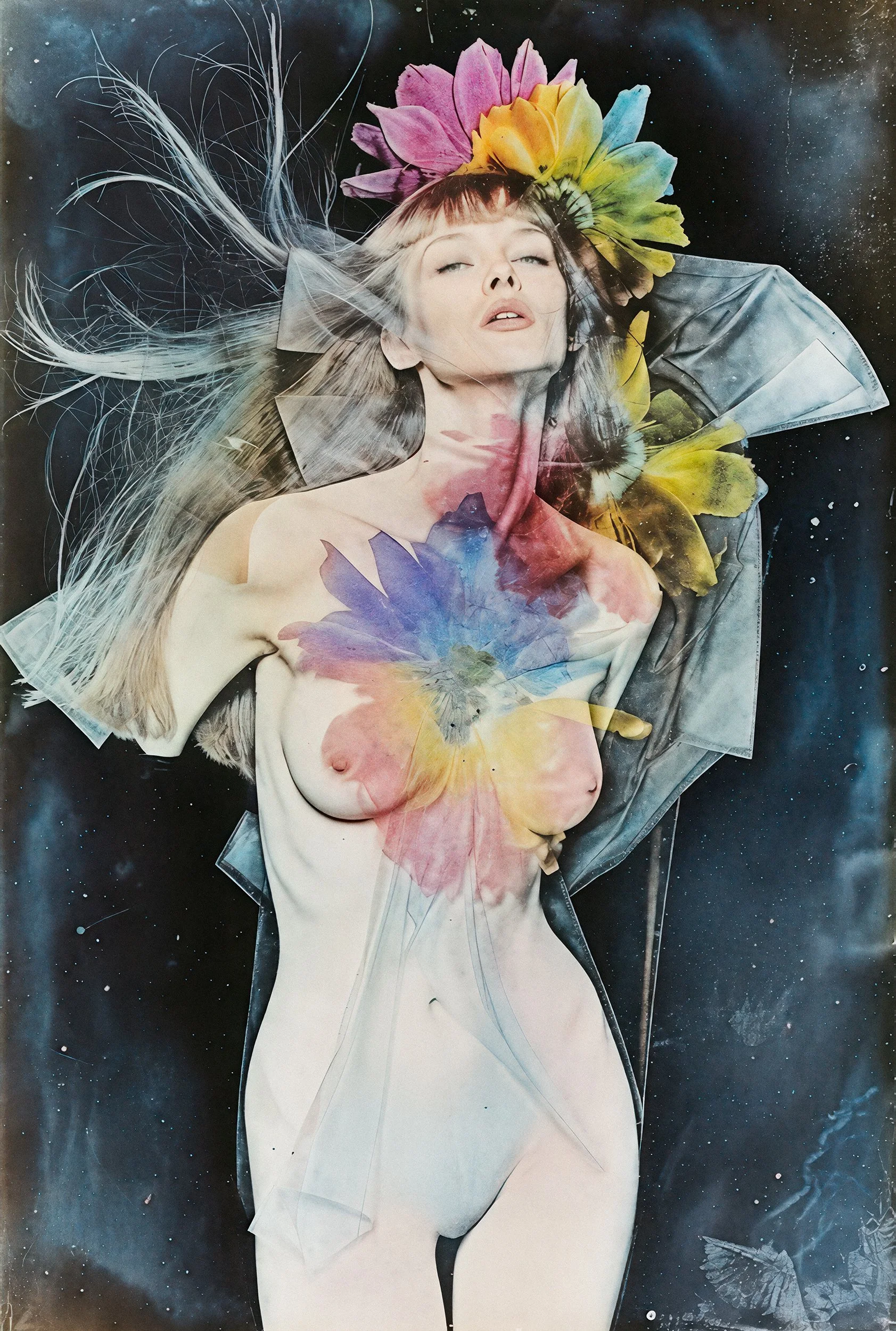 The series “Synth Vanitas” (Artificial Transience) is a critical engagement with AI-generated art. It deliberately plays with the metaphors of transience, beauty, and life, using the two most classic symbols for these themes: the flower and the young, beautiful, nude woman. Both stand as ultimate emblems of life precisely because they make its finitude visible. The series invokes the memento mori idea (“Remember that you must die”). This applies not only to us humans, but also to stylistic epochs and artistic techniques.